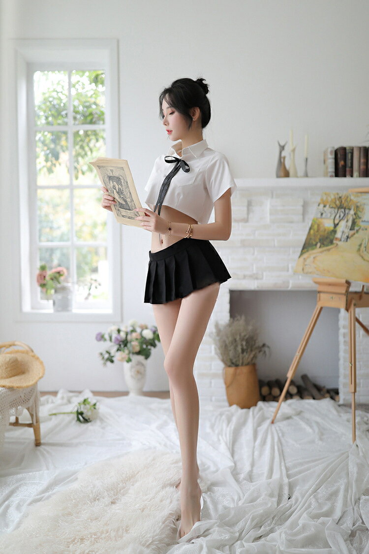 へそ出しセクシーな女子高生コスチューム4点セットです。